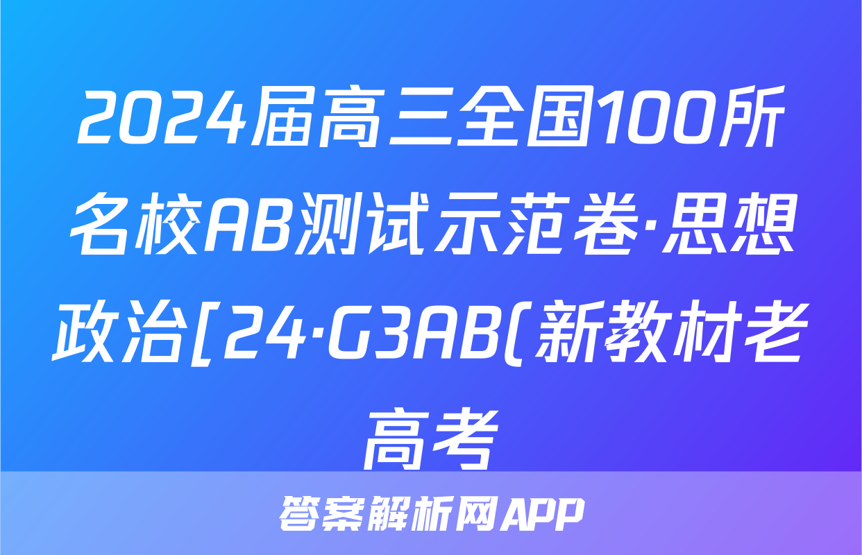 2024届高三全国100所名校AB测试示范卷·思想政治[24·G3AB(新教材老高考)·思想政治-R-必考-HUB]一试题正在持续更新,目前2025-2026全国100所名校答案网为大家整理了相关试题及答案,供大家查缺补漏,高效提升成绩。