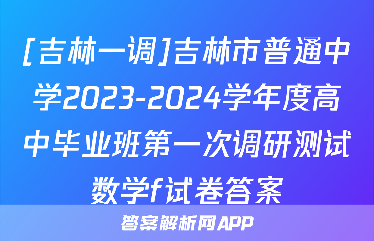 [吉林一调]吉林市普通中学2023-2024学年度高中毕业班第一次调研测试数学f试卷答案正在持续更新,目前2025-2026全国100所名校答案网为大家整理了相关试题及答案,供大家查缺补漏,高效提升成绩。