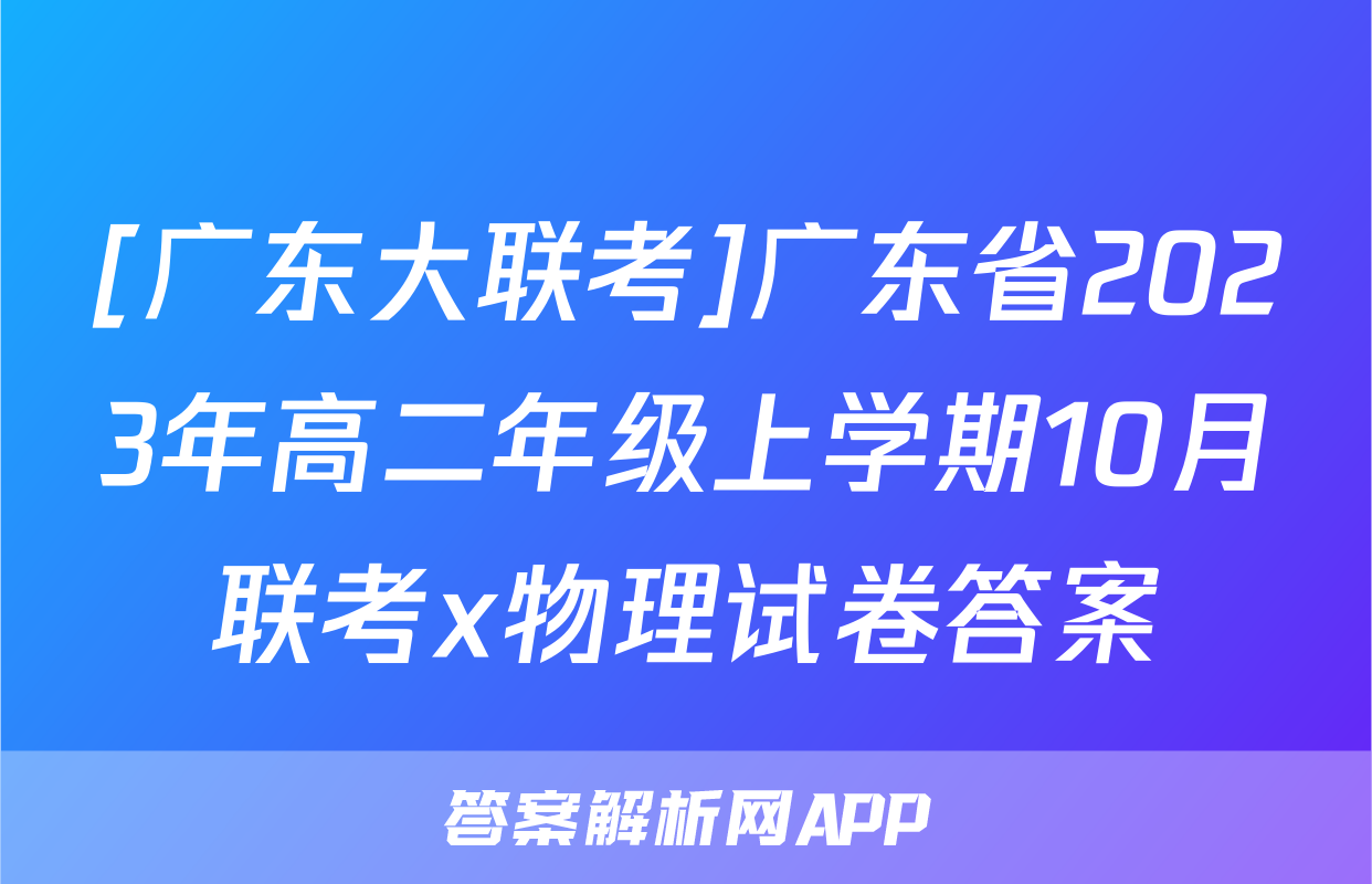 [广东大联考]广东省2023年高二年级上学期10月联考x物理试卷答案正在持续更新,目前2025-2026全国100所名校答案网为大家整理了相关试题及答案,供大家查缺补漏,高效提升成绩。