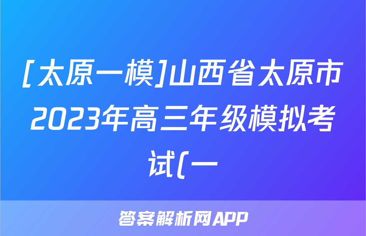 [太原一模]山西省太原市2023年高三年级模拟考试(一)语文答案正在持续更新,目前2025-2026全国100所名校答案网为大家整理了相关试题及答案,供大家查缺补漏,高效提升成绩。