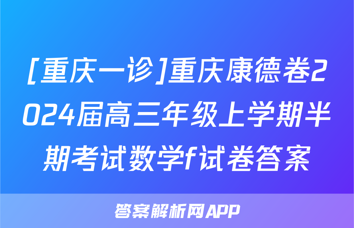 [重庆一诊]重庆康德卷2024届高三年级上学期半期考试数学f试卷答案正在持续更新,目前2025-2026全国100所名校答案网为大家整理了相关试题及答案,供大家查缺补漏,高效提升成绩。