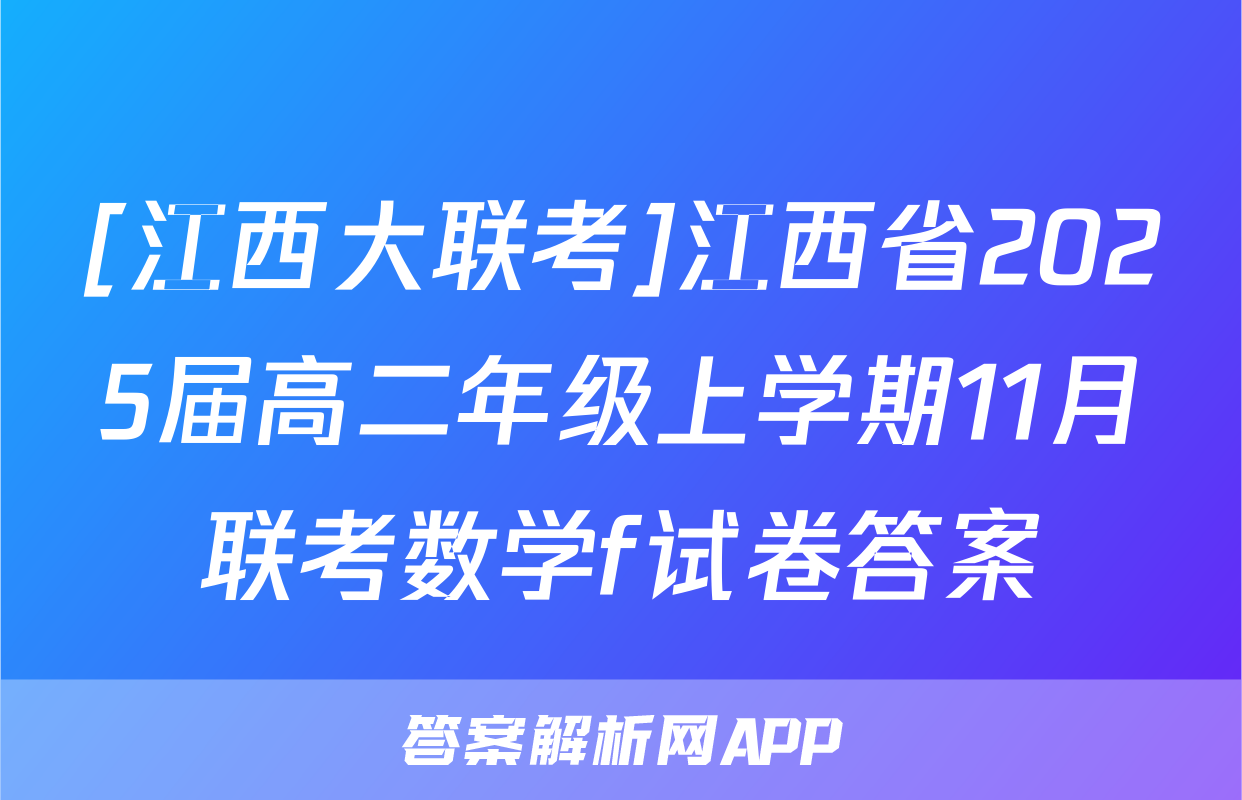 [江西大联考]江西省2025届高二年级上学期11月联考数学f试卷答案正在持续更新,目前2025-2026全国100所名校答案网为大家整理了相关试题及答案,供大家查缺补漏,高效提升成绩。