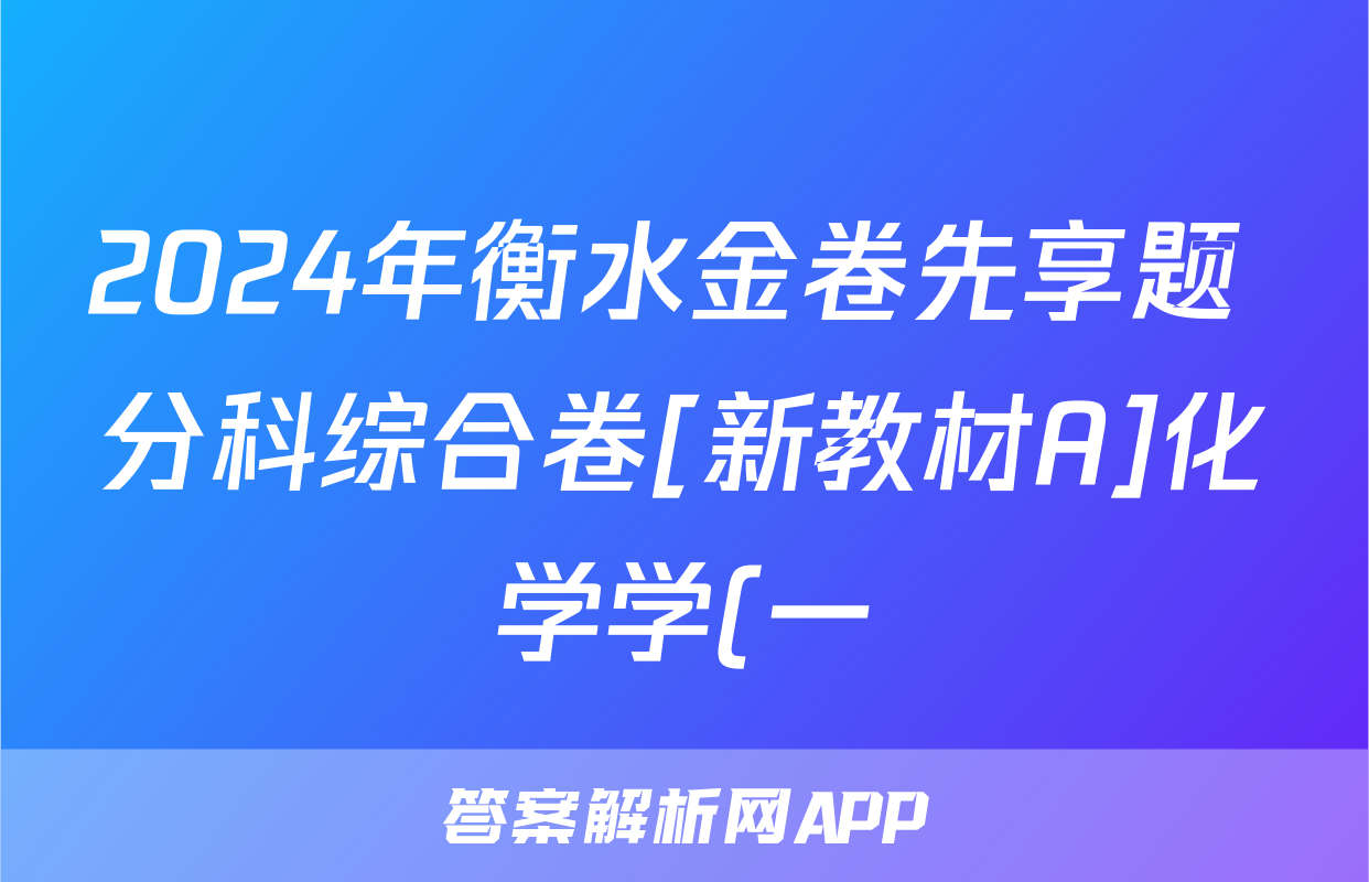 2024年衡水金卷先享题 分科综合卷[新教材A]化学学(一)1答案正在持续更新,目前2025-2026全国100所名校答案网为大家整理了相关试题及答案,供大家查缺补漏,高效提升成绩。