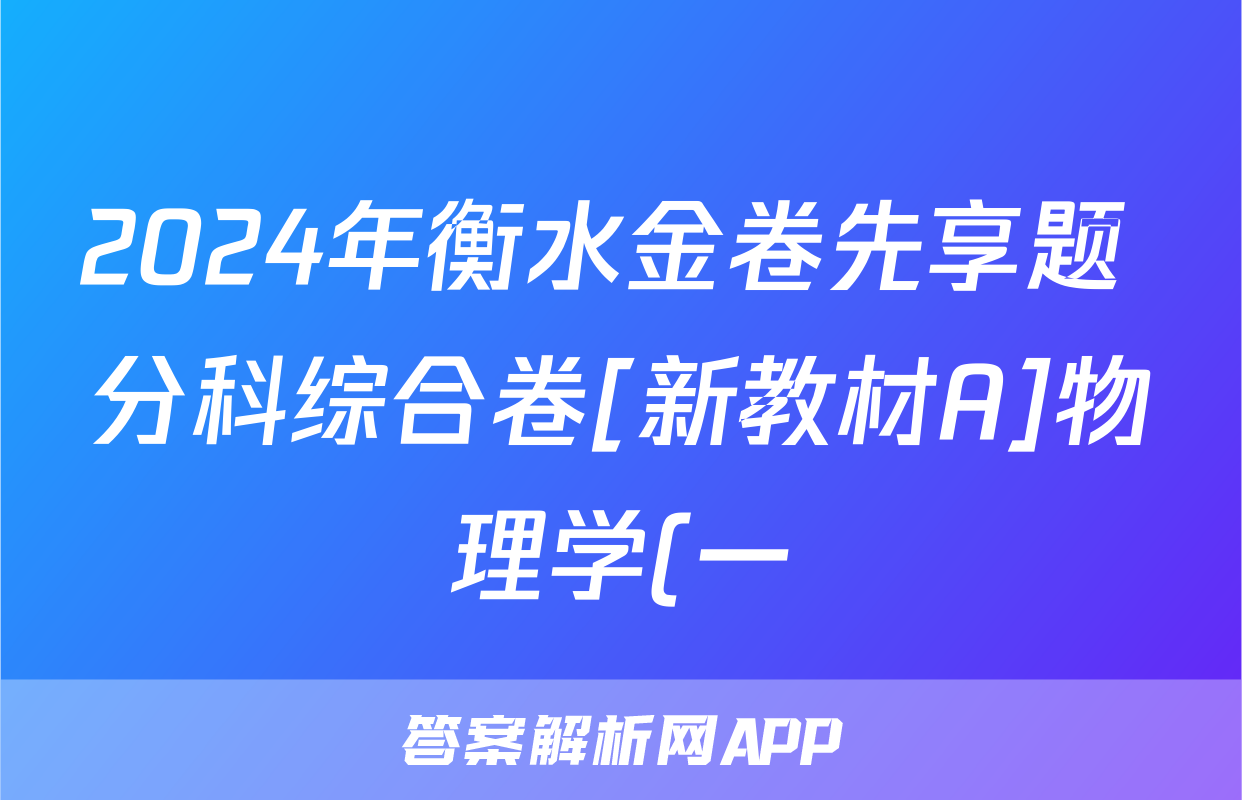 2024年衡水金卷先享题 分科综合卷[新教材A]物理学(一)1答案正在持续更新,目前2025-2026全国100所名校答案网为大家整理了相关试题及答案,供大家查缺补漏,高效提升成绩。