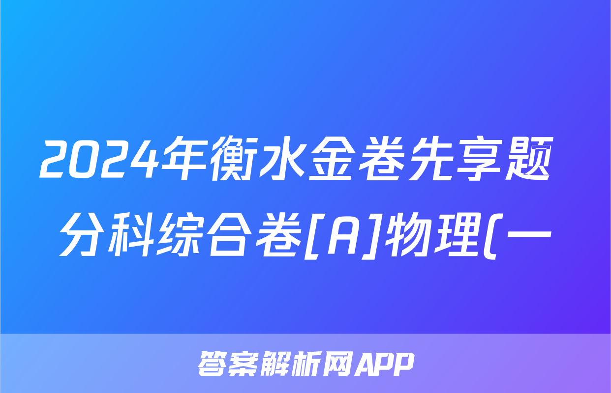 2024年衡水金卷先享题 分科综合卷[A]物理(一)1答案正在持续更新,目前2025-2026全国100所名校答案网为大家整理了相关试题及答案,供大家查缺补漏,高效提升成绩。