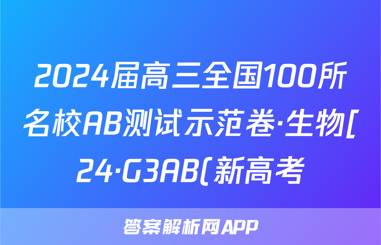 2024届高三全国100所名校AB测试示范卷·生物[24·G3AB(新高考)·生物-R-必考-HUN]五试题正在持续更新,目前2025-2026全国100所名校答案网为大家整理了相关试题及答案,供大家查缺补漏,高效提升成绩。