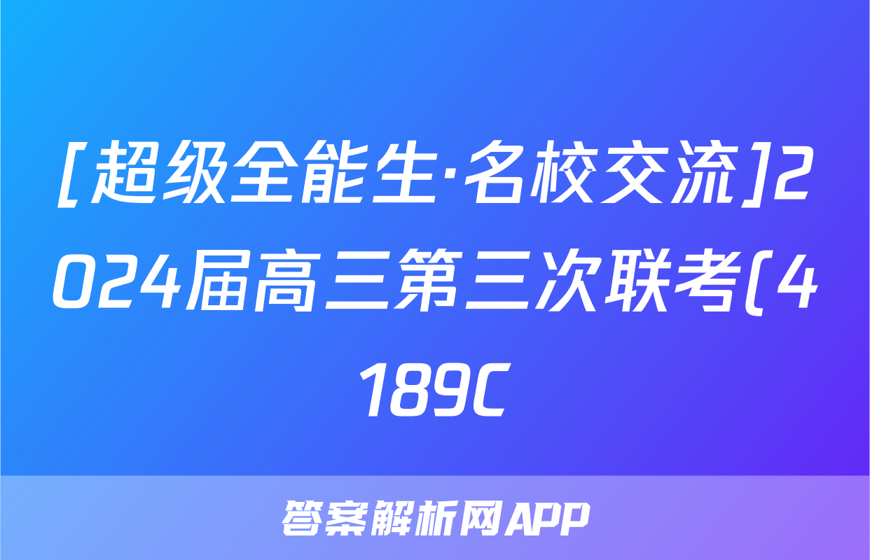 [超级全能生·名校交流]2024届高三第三次联考(4189C)化学XX答案正在持续更新,目前2025-2026全国100所名校答案网为大家整理了相关试题及答案,供大家查缺补漏,高效提升成绩。