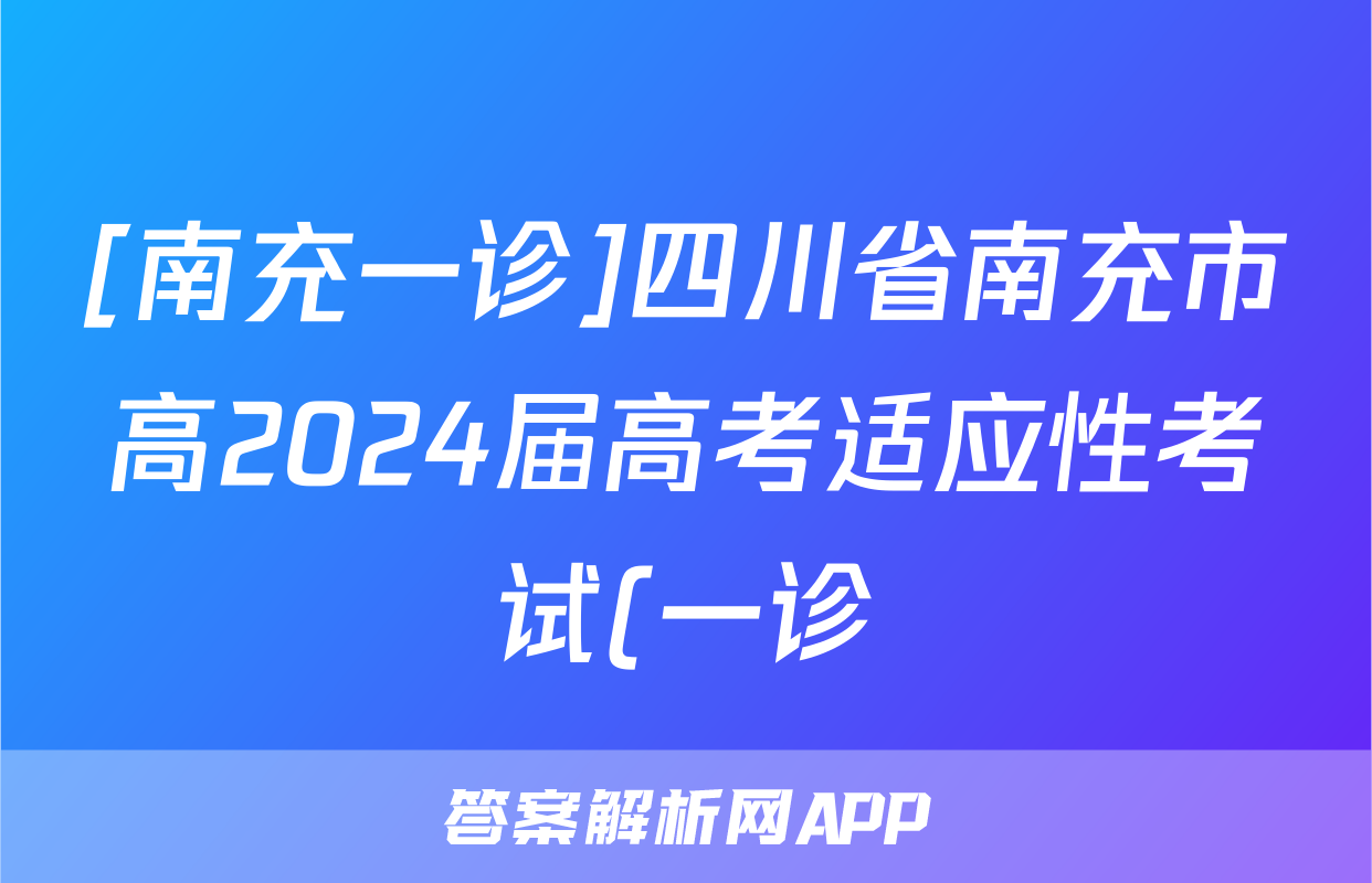 [南充一诊]四川省南充市高2024届高考适应性考试(一诊)文科综合答案正在持续更新,目前2025-2026全国100所名校答案网为大家整理了相关试题及答案,供大家查缺补漏,高效提升成绩。