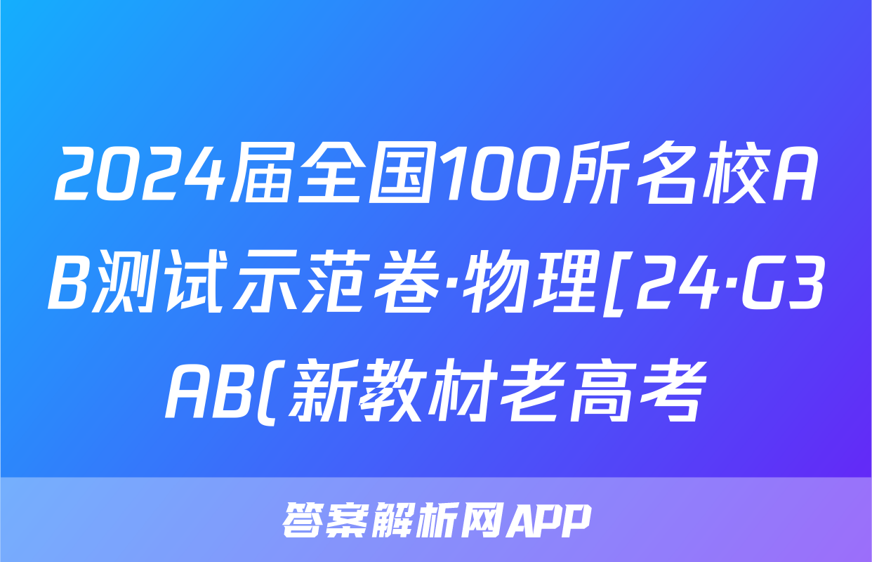 2024届全国100所名校AB测试示范卷·物理[24·G3AB(新教材老高考)·物理-LKB-必考-SD]三试题正在持续更新,目前2025-2026全国100所名校答案网为大家整理了相关试题及答案,供大家查缺补漏,高效提升成绩。