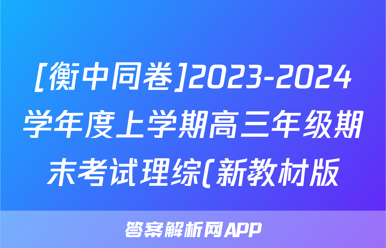 [衡中同卷]2023-2024学年度上学期高三年级期末考试理综(新教材版)试题正在持续更新,目前2025-2026全国100所名校答案网为大家整理了相关试题及答案,供大家查缺补漏,高效提升成绩。