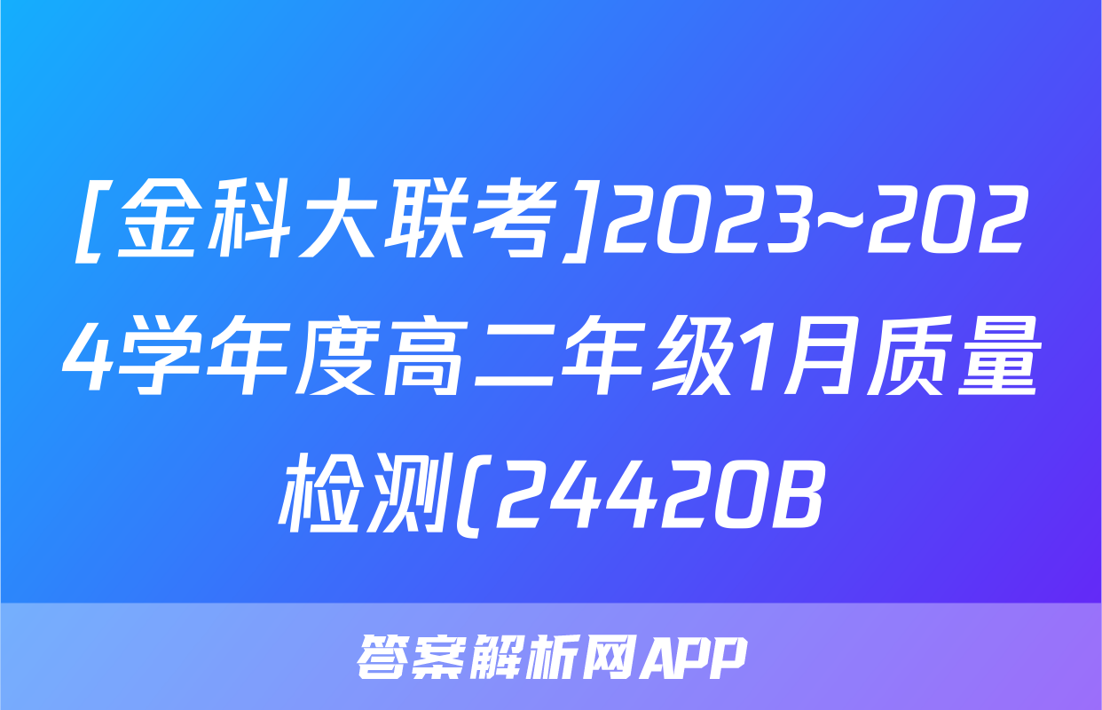 [金科大联考]2023~2024学年度高二年级1月质量检测(24420B)化学B2答案正在持续更新,目前2025-2026全国100所名校答案网为大家整理了相关试题及答案,供大家查缺补漏,高效提升成绩。