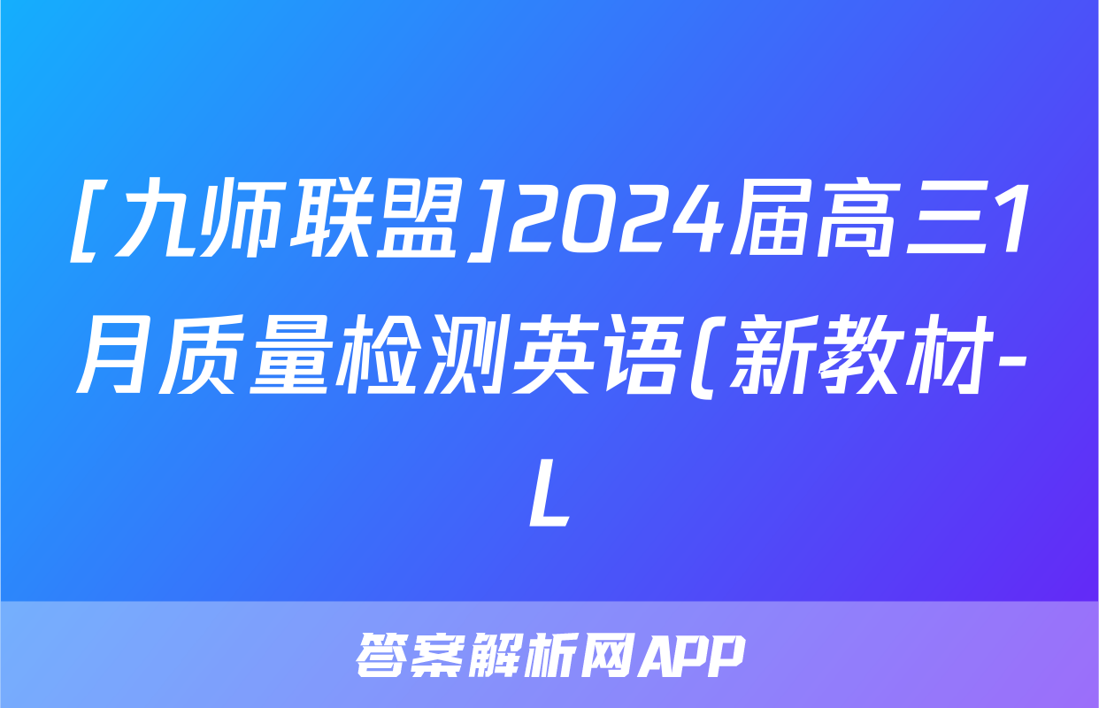 [九师联盟]2024届高三1月质量检测英语(新教材-L)答案正在持续更新,目前2025-2026全国100所名校答案网为大家整理了相关试题及答案,供大家查缺补漏,高效提升成绩。