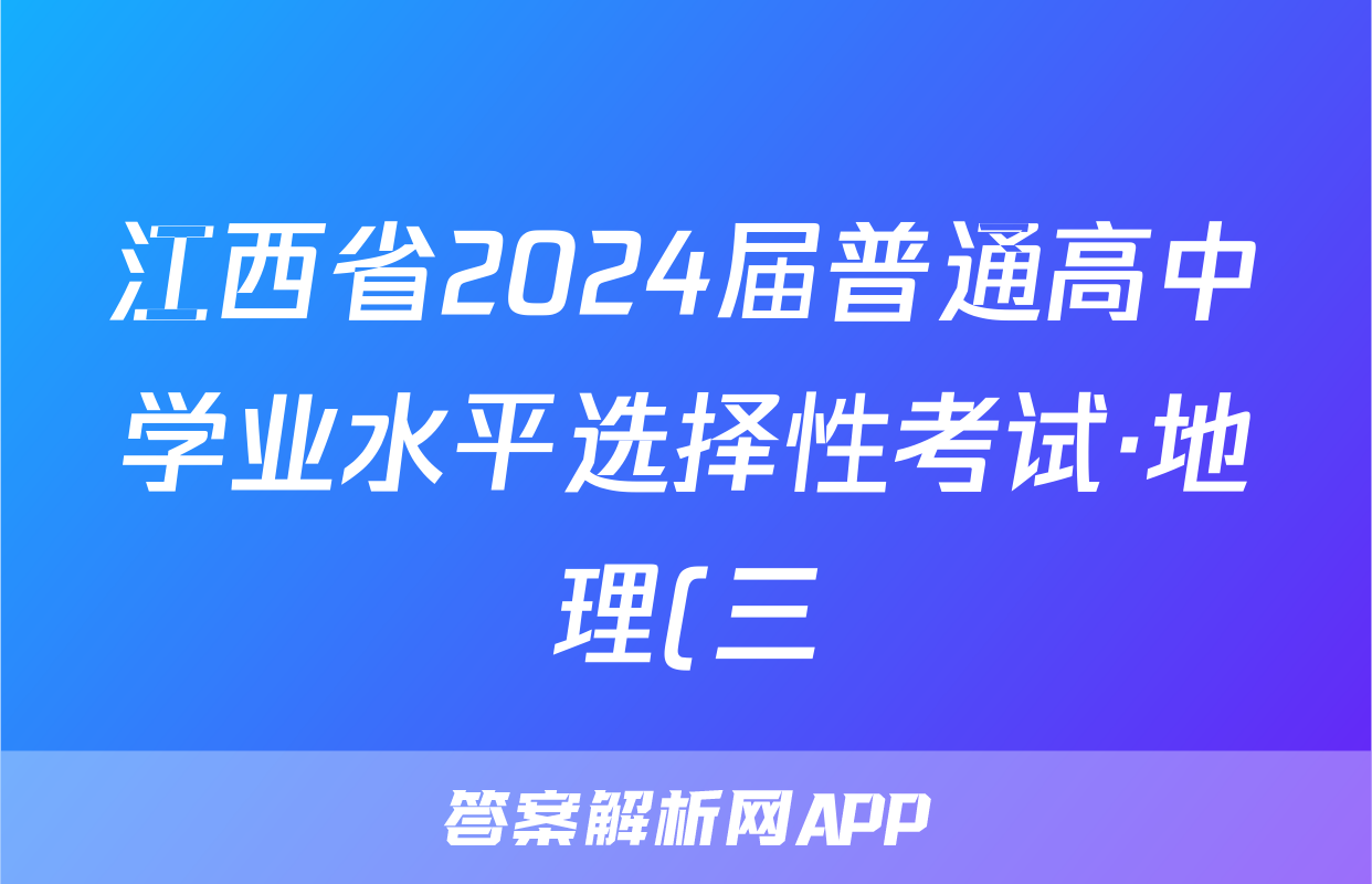 江西省2024届普通高中学业水平选择性考试·地理(三)3[24·(新高考)ZX·MNJ·地理·JX]试题正在持续更新,目前2025-2026全国100所名校答案网为大家整理了相关试题及答案,供大家查缺补漏,高效提升成绩。