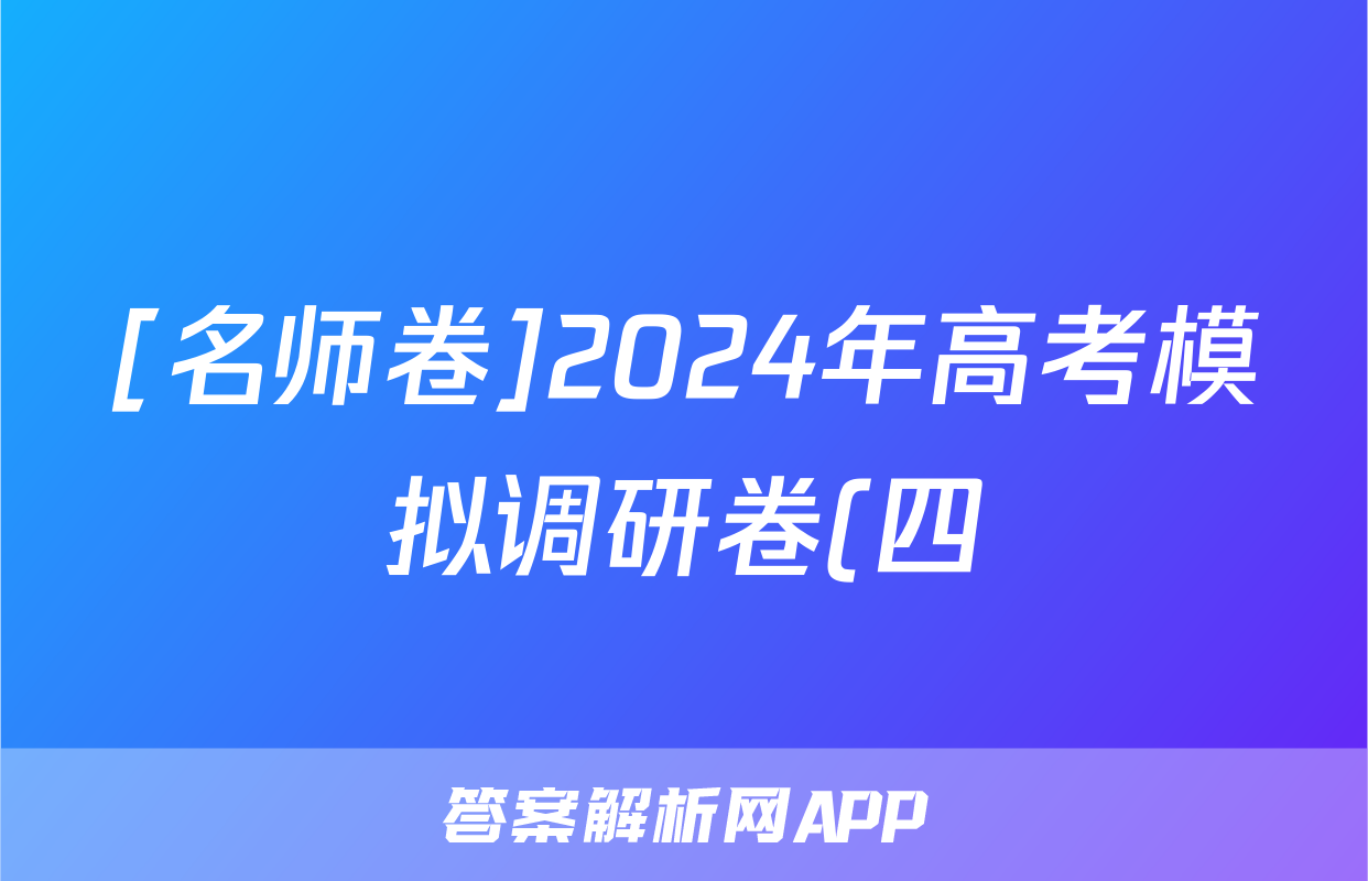 [名师卷]2024年高考模拟调研卷(四)4地理(新教材▣)试题正在持续更新,目前2025-2026全国100所名校答案网为大家整理了相关试题及答案,供大家查缺补漏,高效提升成绩。