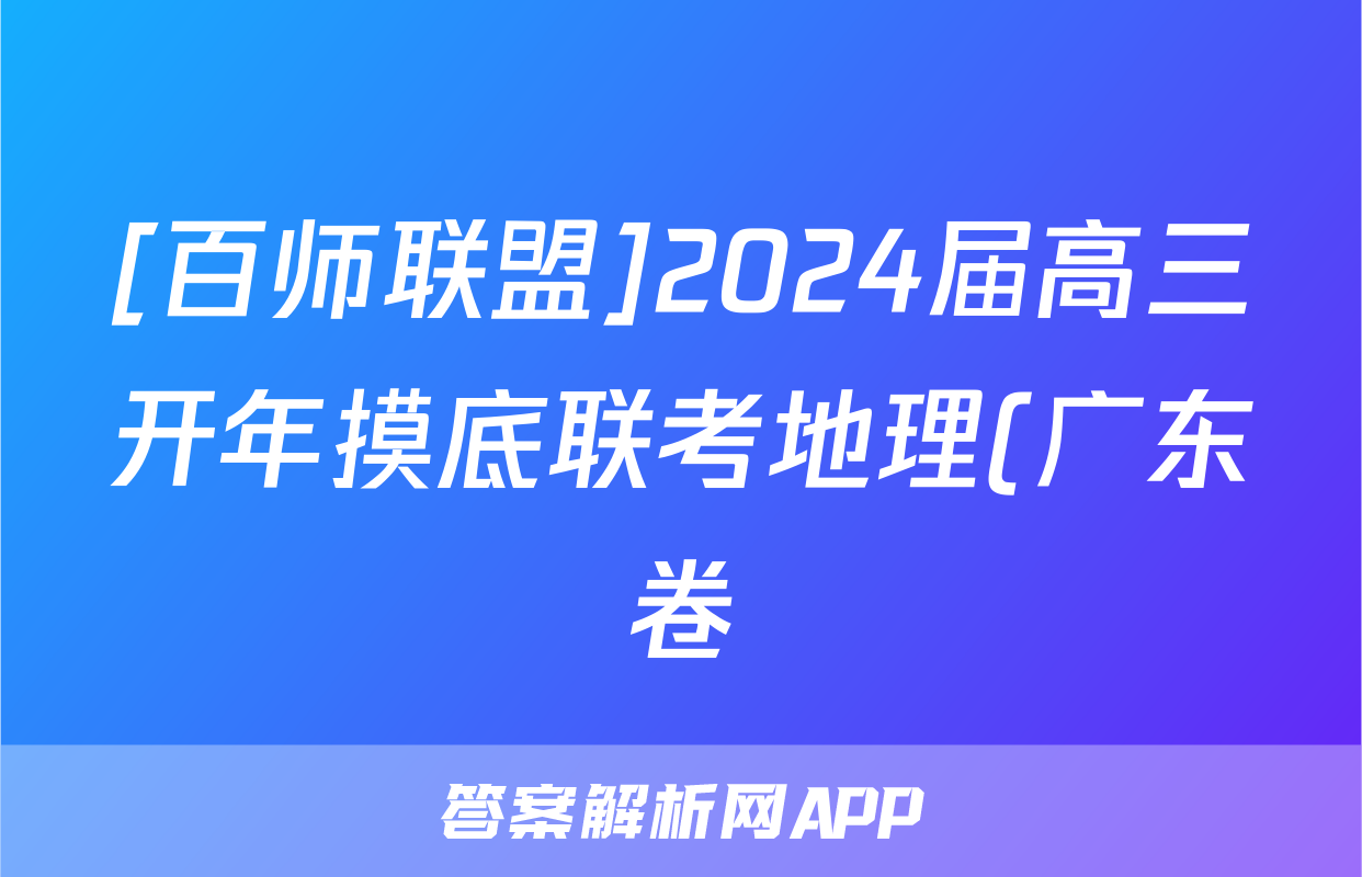 [百师联盟]2024届高三开年摸底联考地理(广东卷)试题正在持续更新,目前2025-2026全国100所名校答案网为大家整理了相关试题及答案,供大家查缺补漏,高效提升成绩。