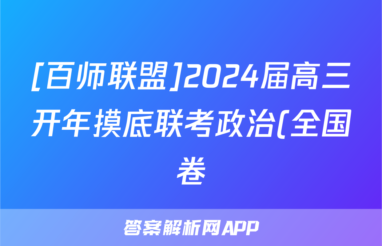 [百师联盟]2024届高三开年摸底联考政治(全国卷)试题正在持续更新,目前2025-2026全国100所名校答案网为大家整理了相关试题及答案,供大家查缺补漏,高效提升成绩。