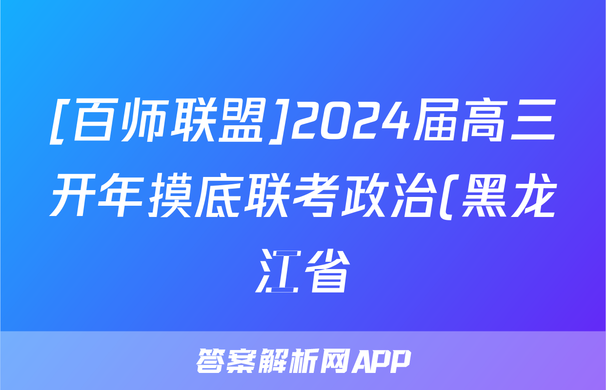[百师联盟]2024届高三开年摸底联考政治(黑龙江省)答案正在持续更新,目前2025-2026全国100所名校答案网为大家整理了相关试题及答案,供大家查缺补漏,高效提升成绩。