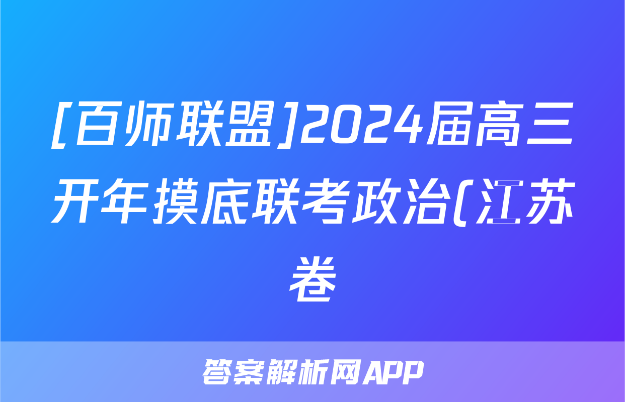 [百师联盟]2024届高三开年摸底联考政治(江苏卷)试题正在持续更新,目前2025-2026全国100所名校答案网为大家整理了相关试题及答案,供大家查缺补漏,高效提升成绩。