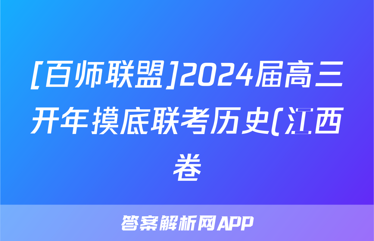 [百师联盟]2024届高三开年摸底联考历史(江西卷)试题正在持续更新,目前2025-2026全国100所名校答案网为大家整理了相关试题及答案,供大家查缺补漏,高效提升成绩。