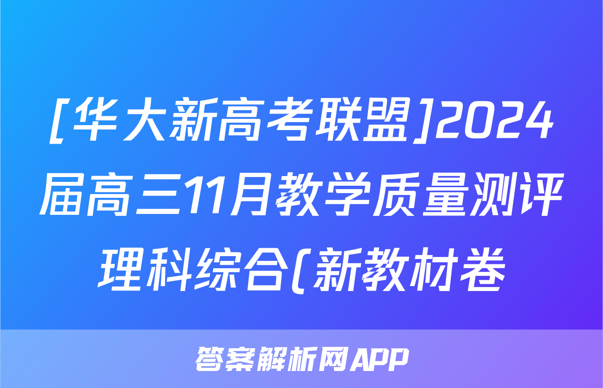 [华大新高考联盟]2024届高三11月教学质量测评理科综合(新教材卷)试题正在持续更新,目前2025-2026全国100所名校答案网为大家整理了相关试题及答案,供大家查缺补漏,高效提升成绩。