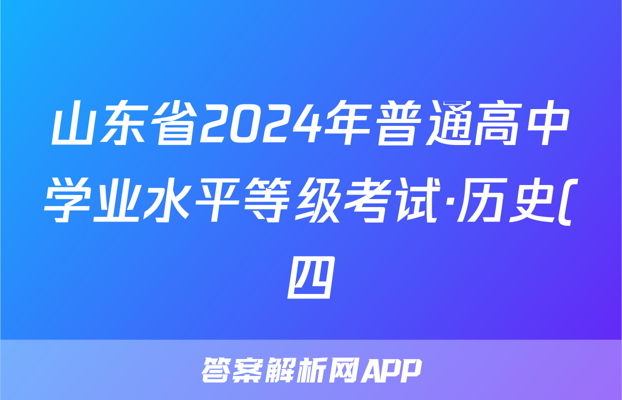 山东省2024年普通高中学业水平等级考试·历史(四)4[24·(新高考)ZX·MNJ·历史·SD]试题正在持续更新,目前2025-2026全国100所名校答案网为大家整理了相关试题及答案,供大家查缺补漏,高效提升成绩。