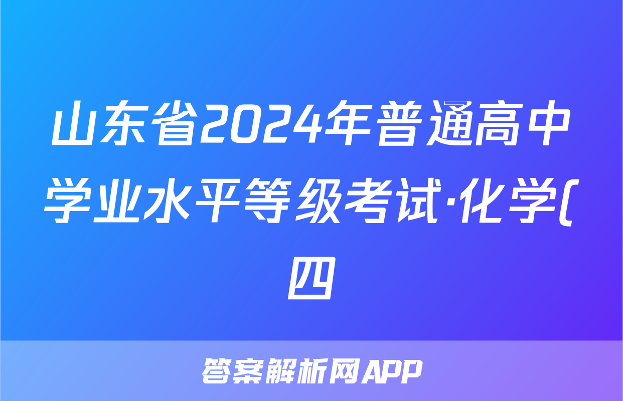 山东省2024年普通高中学业水平等级考试·化学(四)4[24·(新高考)ZX·MNJ·化学·SD]答案正在持续更新,目前2025-2026全国100所名校答案网为大家整理了相关试题及答案,供大家查缺补漏,高效提升成绩。