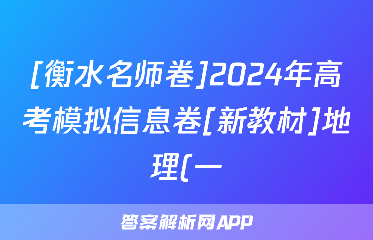 [衡水名师卷]2024年高考模拟信息卷[新教材]地理(一)1答案正在持续更新,目前2025-2026全国100所名校答案网为大家整理了相关试题及答案,供大家查缺补漏,高效提升成绩。