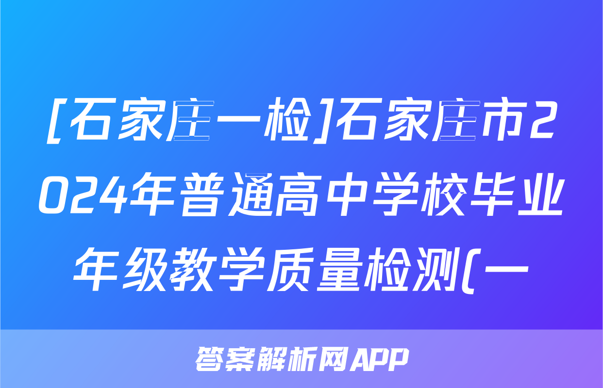 [石家庄一检]石家庄市2024年普通高中学校毕业年级教学质量检测(一)1地理答案正在持续更新,目前2025-2026全国100所名校答案网为大家整理了相关试题及答案,供大家查缺补漏,高效提升成绩。