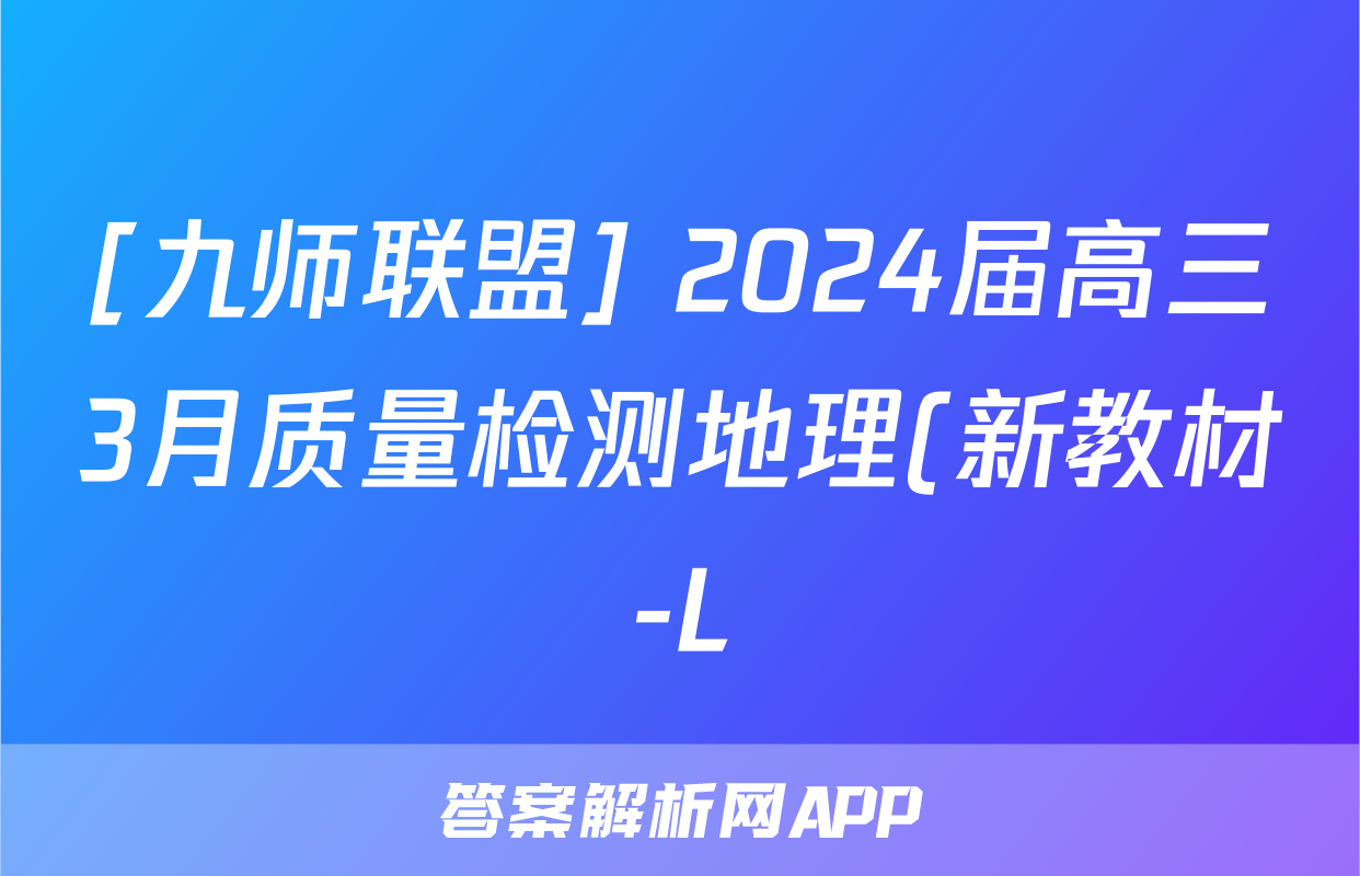 [九师联盟] 2024届高三3月质量检测地理(新教材-L)试题正在持续更新,目前2025-2026全国100所名校答案网为大家整理了相关试题及答案,供大家查缺补漏,高效提升成绩。