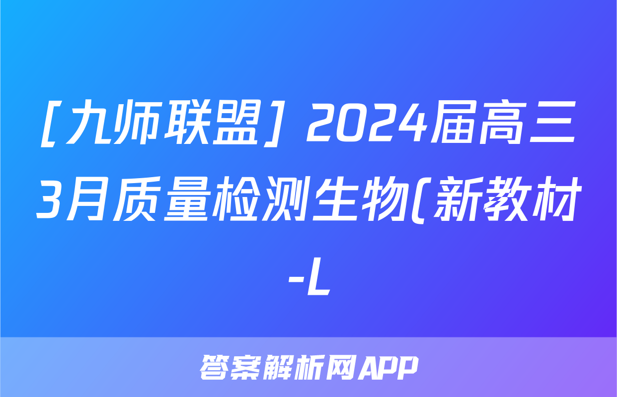 [九师联盟] 2024届高三3月质量检测生物(新教材-L)试题正在持续更新,目前2025-2026全国100所名校答案网为大家整理了相关试题及答案,供大家查缺补漏,高效提升成绩。