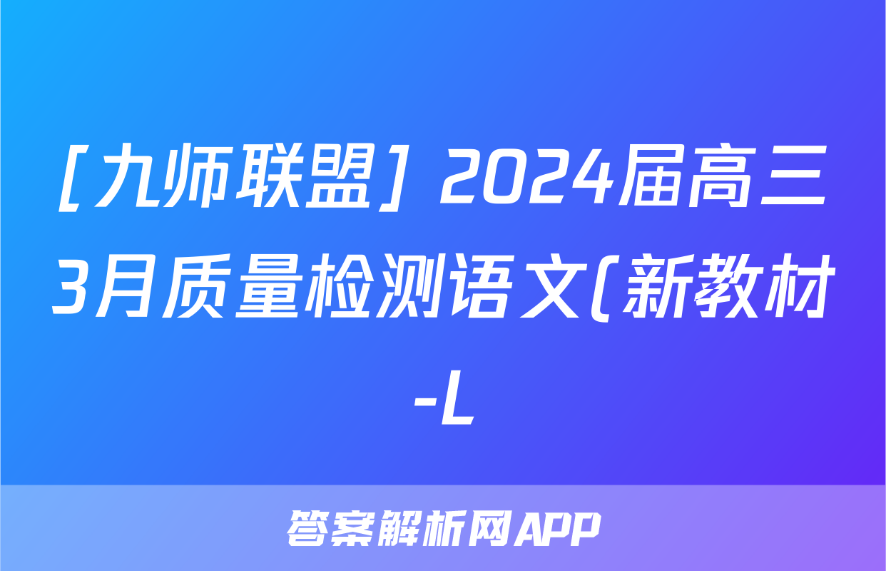 [九师联盟] 2024届高三3月质量检测语文(新教材-L)答案正在持续更新,目前2025-2026全国100所名校答案网为大家整理了相关试题及答案,供大家查缺补漏,高效提升成绩。