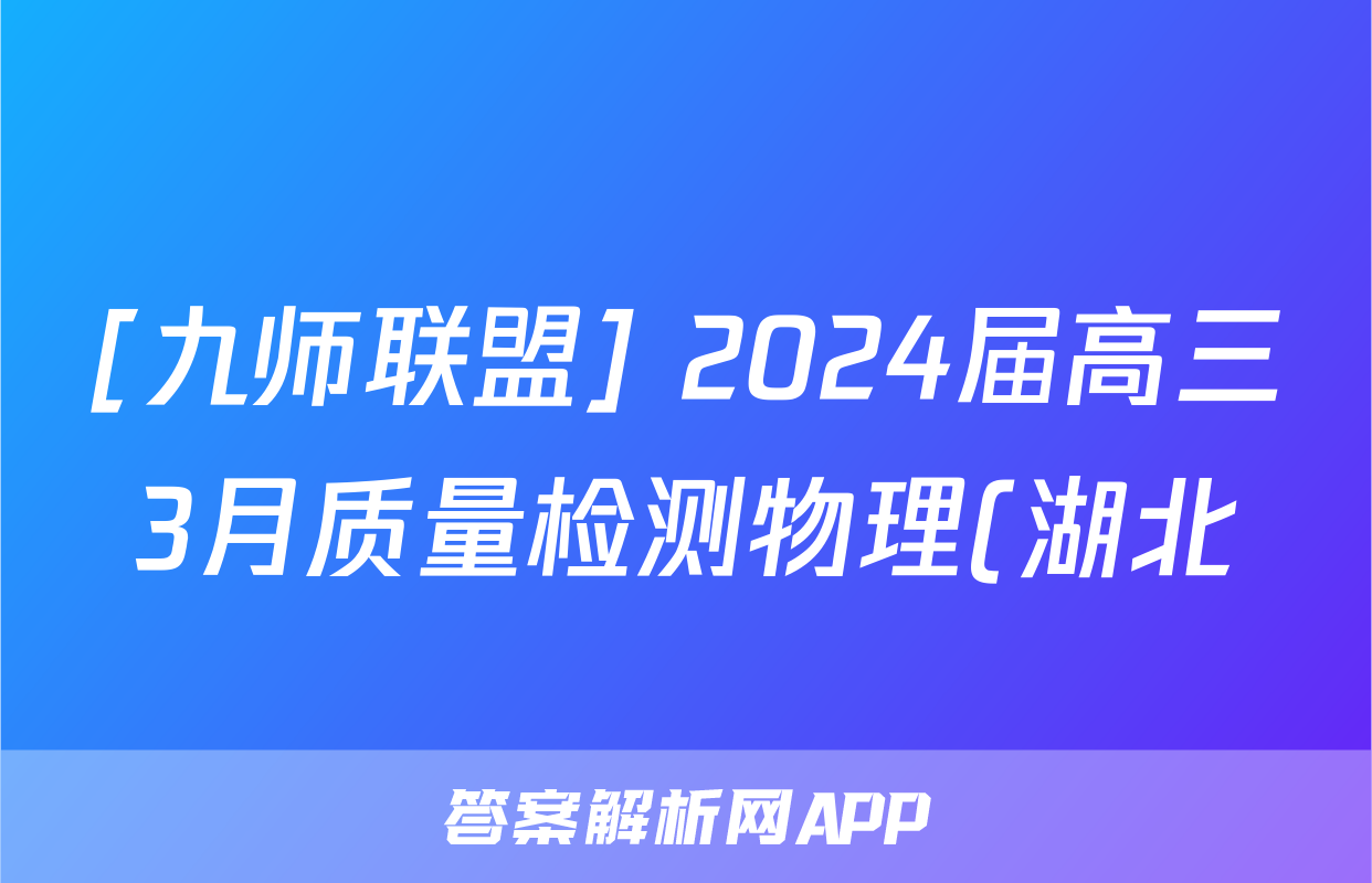 [九师联盟] 2024届高三3月质量检测物理(湖北)试题正在持续更新,目前2025-2026全国100所名校答案网为大家整理了相关试题及答案,供大家查缺补漏,高效提升成绩。