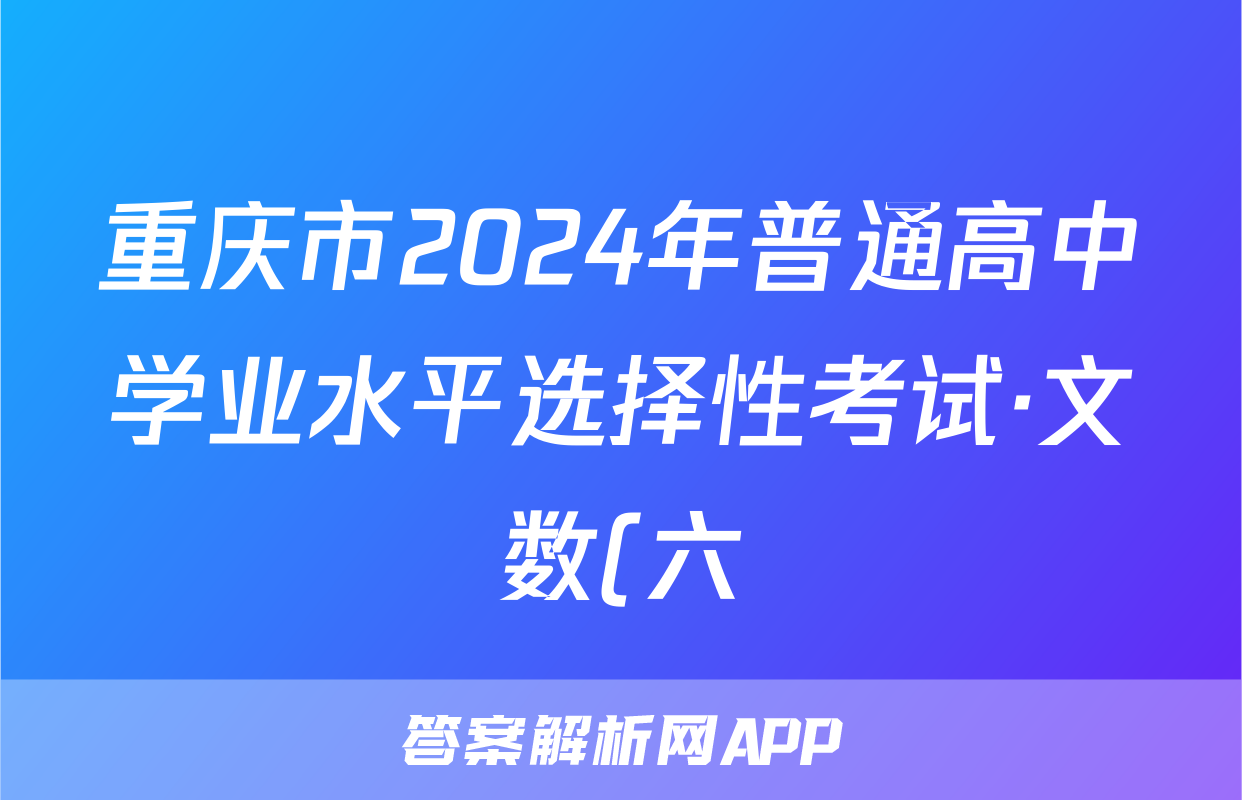 重庆市2024年普通高中学业水平选择性考试·文数(六)6[24·(新高考)ZX·MNJ·文数·CQ]答案正在持续更新,目前2025-2026全国100所名校答案网为大家整理了相关试题及答案,供大家查缺补漏,高效提升成绩。
