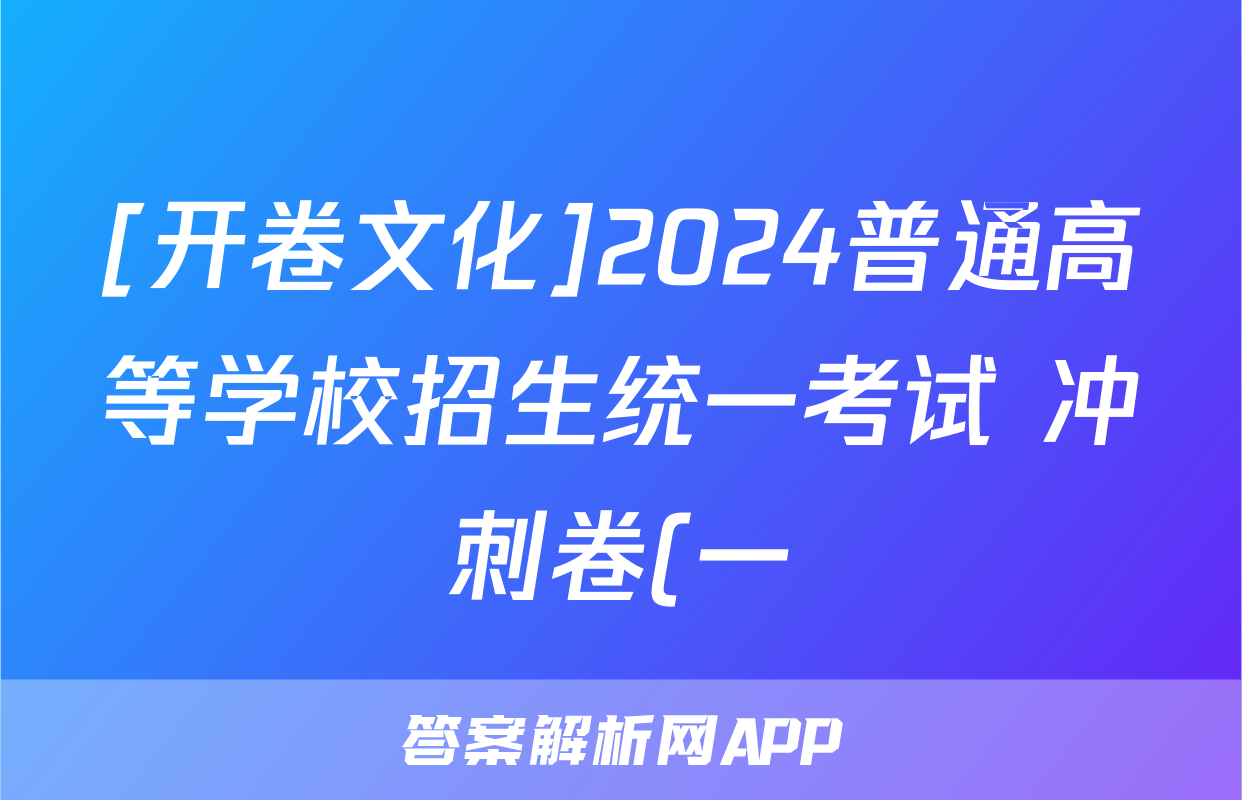 [开卷文化]2024普通高等学校招生统一考试 冲刺卷(一)1化学(A)试题正在持续更新,目前2025-2026全国100所名校答案网为大家整理了相关试题及答案,供大家查缺补漏,高效提升成绩。