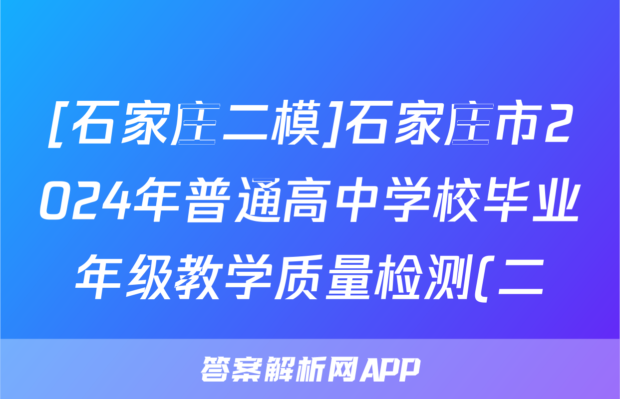 [石家庄二模]石家庄市2024年普通高中学校毕业年级教学质量检测(二)理数试题正在持续更新,目前2025-2026全国100所名校答案网为大家整理了相关试题及答案,供大家查缺补漏,高效提升成绩。