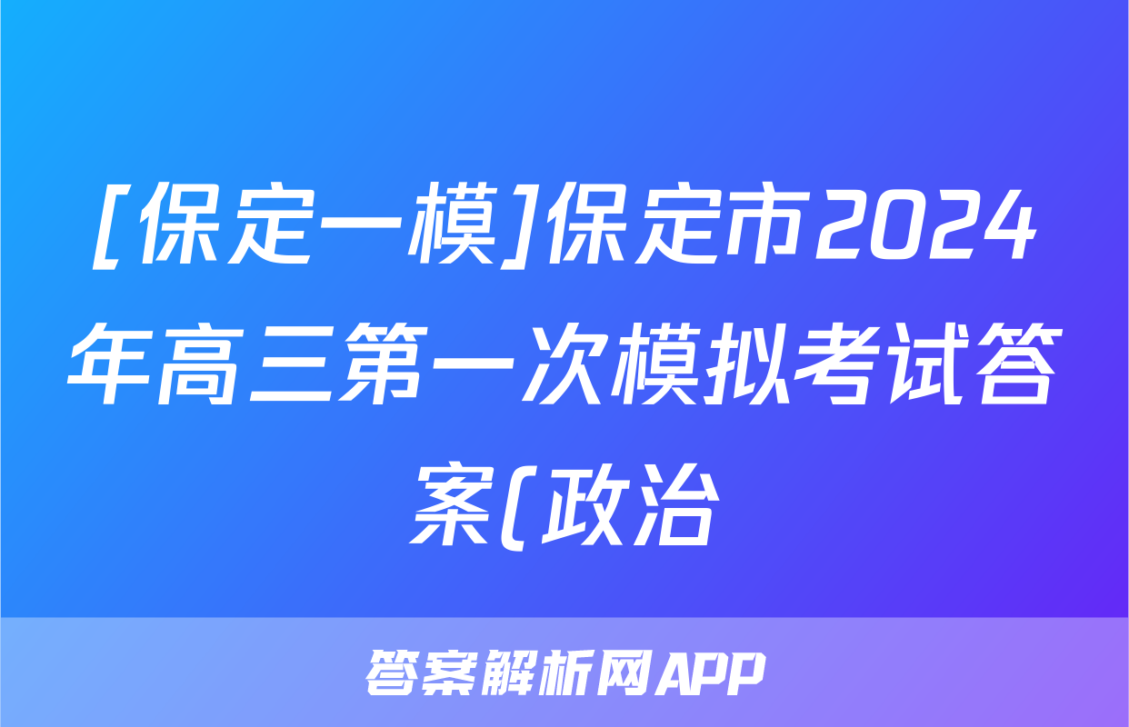[保定一模]保定市2024年高三第一次模拟考试答案(政治)正在持续更新,目前2025-2026全国100所名校答案网为大家整理了相关试题及答案,供大家查缺补漏,高效提升成绩。