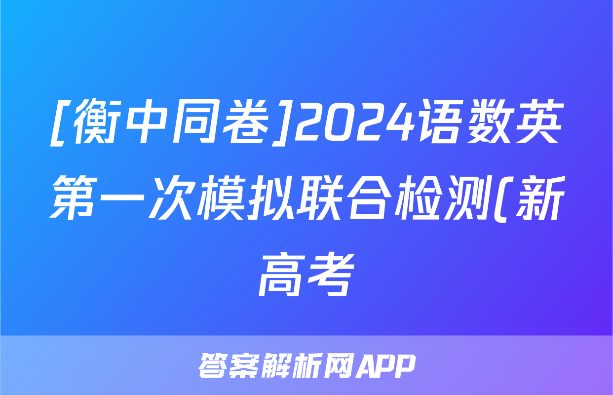 [衡中同卷]2024语数英第一次模拟联合检测(新高考)答案(化学)正在持续更新,目前2025-2026全国100所名校答案网为大家整理了相关试题及答案,供大家查缺补漏,高效提升成绩。