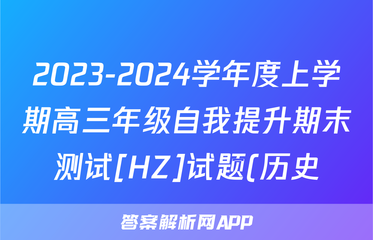2023-2024学年度上学期高三年级自我提升期末测试[HZ]试题(历史)正在持续更新,目前2025-2026全国100所名校答案网为大家整理了相关试题及答案,供大家查缺补漏,高效提升成绩。