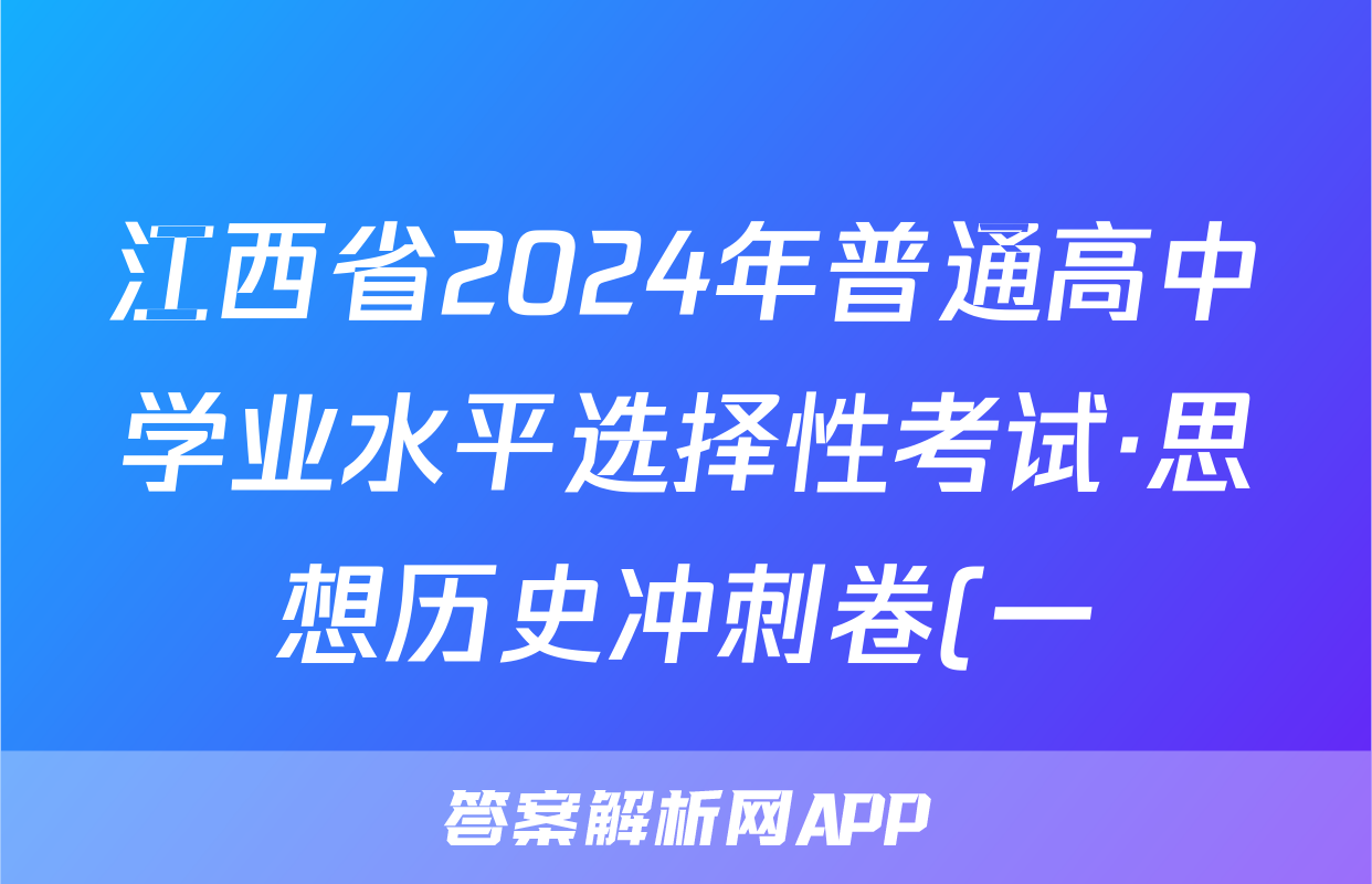 江西省2024年普通高中学业水平选择性考试·思想历史冲刺卷(一)1[24·(新高考)CCJ·思想历史·JX]答案正在持续更新,目前2025-2026全国100所名校答案网为大家整理了相关试题及答案,供大家查缺补漏,高效提升成绩。