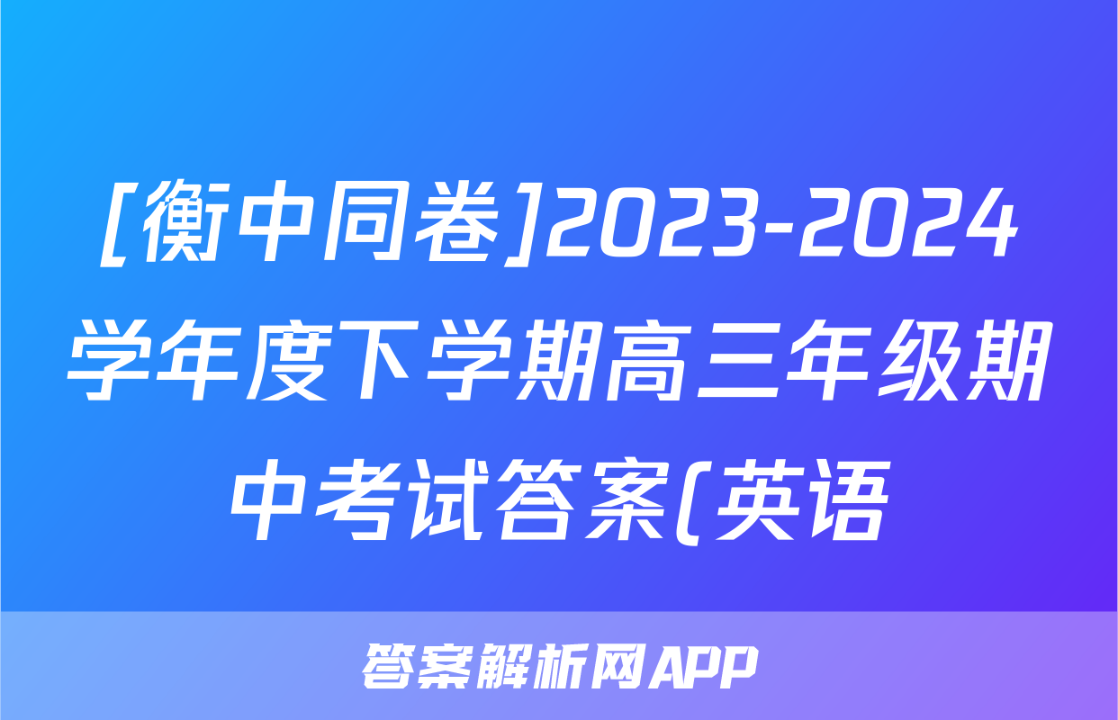 [衡中同卷]2023-2024学年度下学期高三年级期中考试答案(英语)正在持续更新,目前2025-2026全国100所名校答案网为大家整理了相关试题及答案,供大家查缺补漏,高效提升成绩。