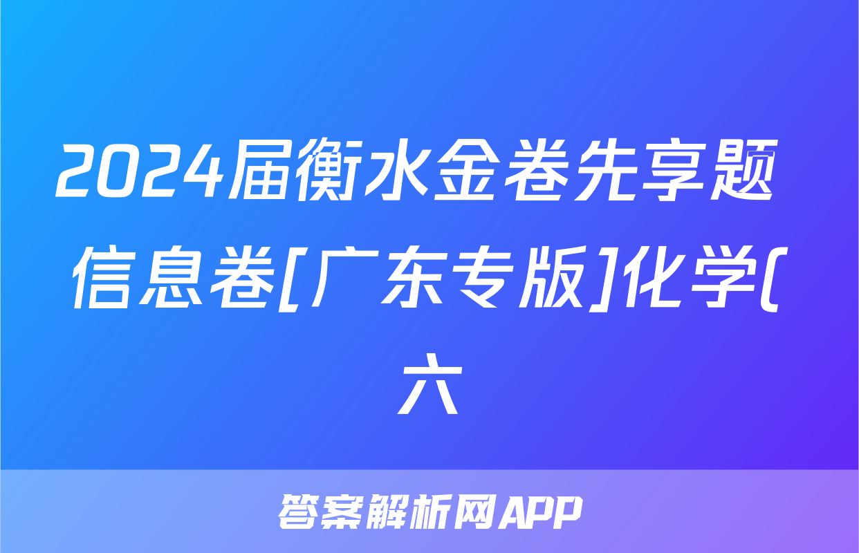2024届衡水金卷先享题 信息卷[广东专版]化学(六)6答案正在持续更新,目前2025-2026全国100所名校答案网为大家整理了相关试题及答案,供大家查缺补漏,高效提升成绩。