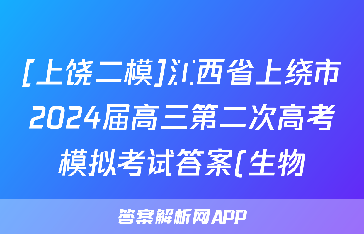 [上饶二模]江西省上绕市2024届高三第二次高考模拟考试答案(生物)正在持续更新,目前2025-2026全国100所名校答案网为大家整理了相关试题及答案,供大家查缺补漏,高效提升成绩。