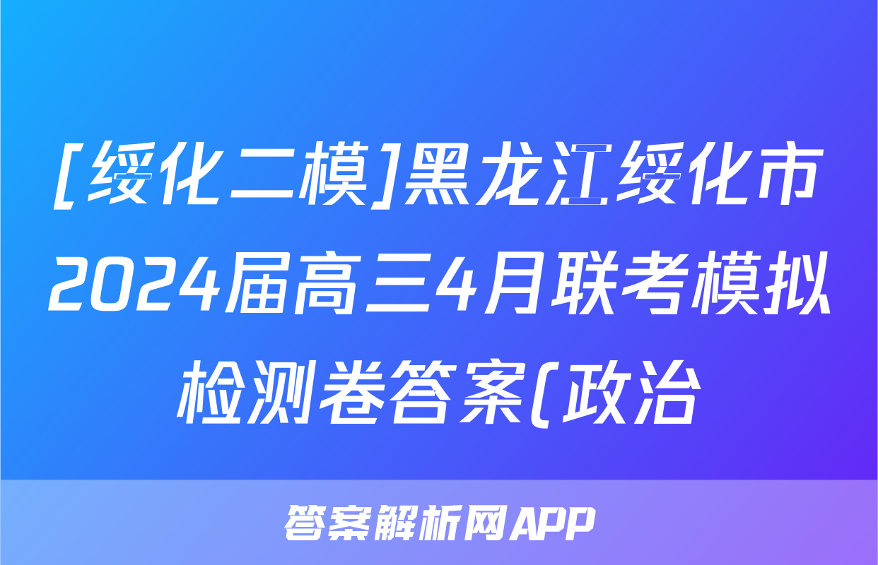 [绥化二模]黑龙江绥化市2024届高三4月联考模拟检测卷答案(政治)正在持续更新,目前2025-2026全国100所名校答案网为大家整理了相关试题及答案,供大家查缺补漏,高效提升成绩。
