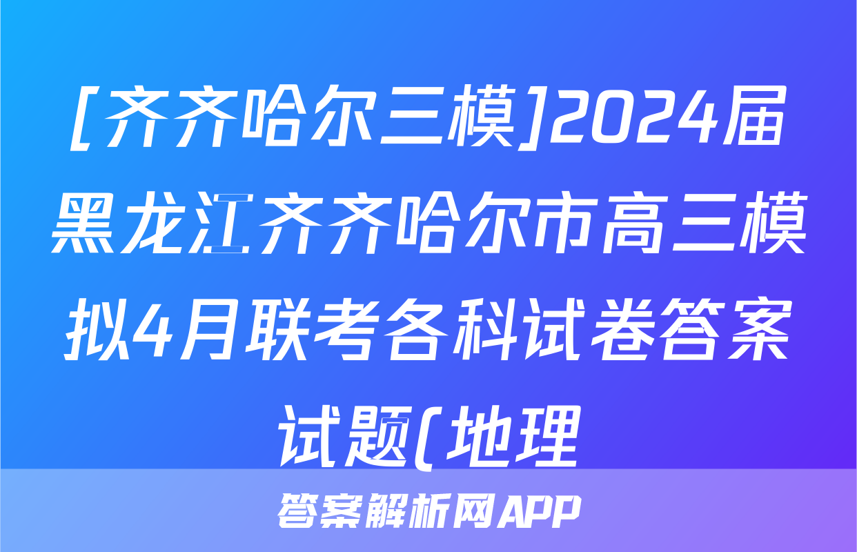 [齐齐哈尔三模]2024届黑龙江齐齐哈尔市高三模拟4月联考各科试卷答案试题(地理)正在持续更新,目前2025-2026全国100所名校答案网为大家整理了相关试题及答案,供大家查缺补漏,高效提升成绩。