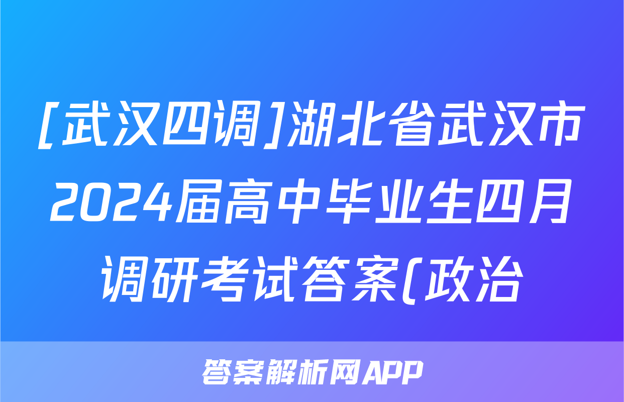 [武汉四调]湖北省武汉市2024届高中毕业生四月调研考试答案(政治)