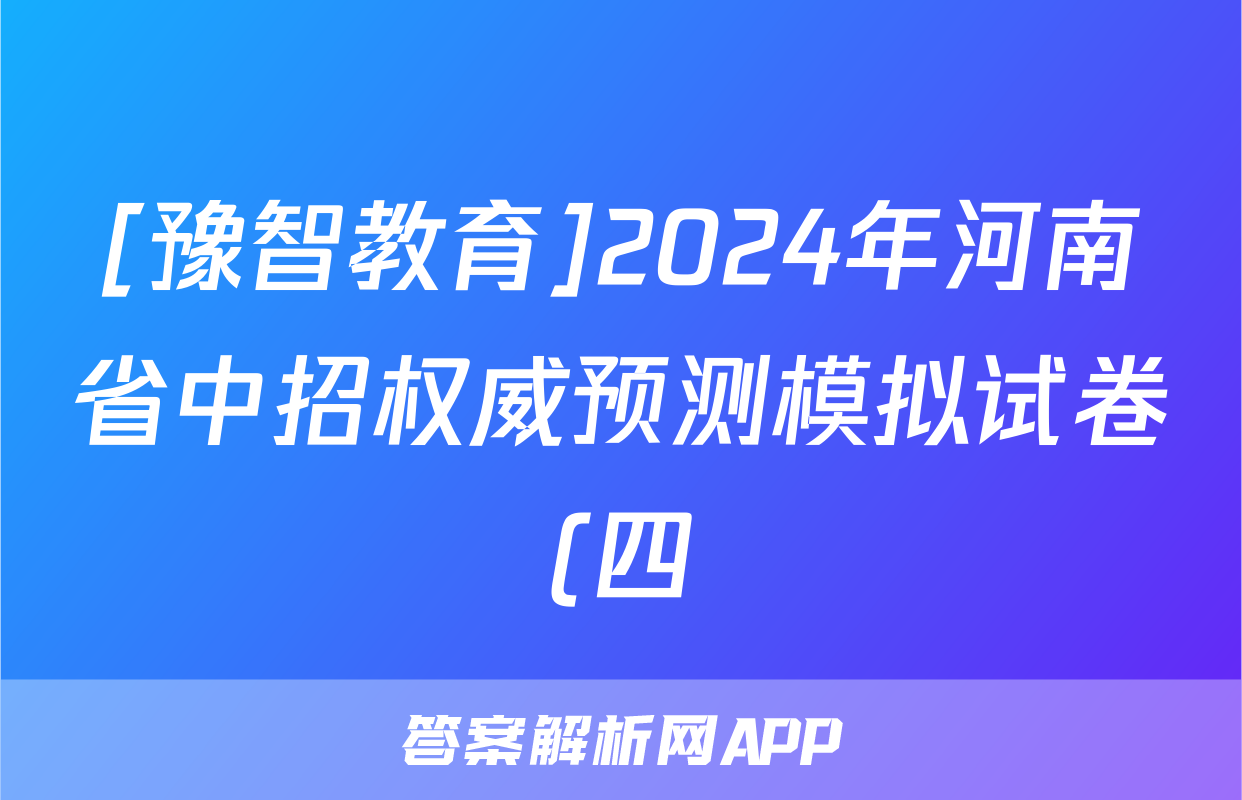 [豫智教育]2024年河南省中招权威预测模拟试卷(四)4物理答案正在持续更新,目前2025-2026全国100所名校答案网为大家整理了相关试题及答案,供大家查缺补漏,高效提升成绩。