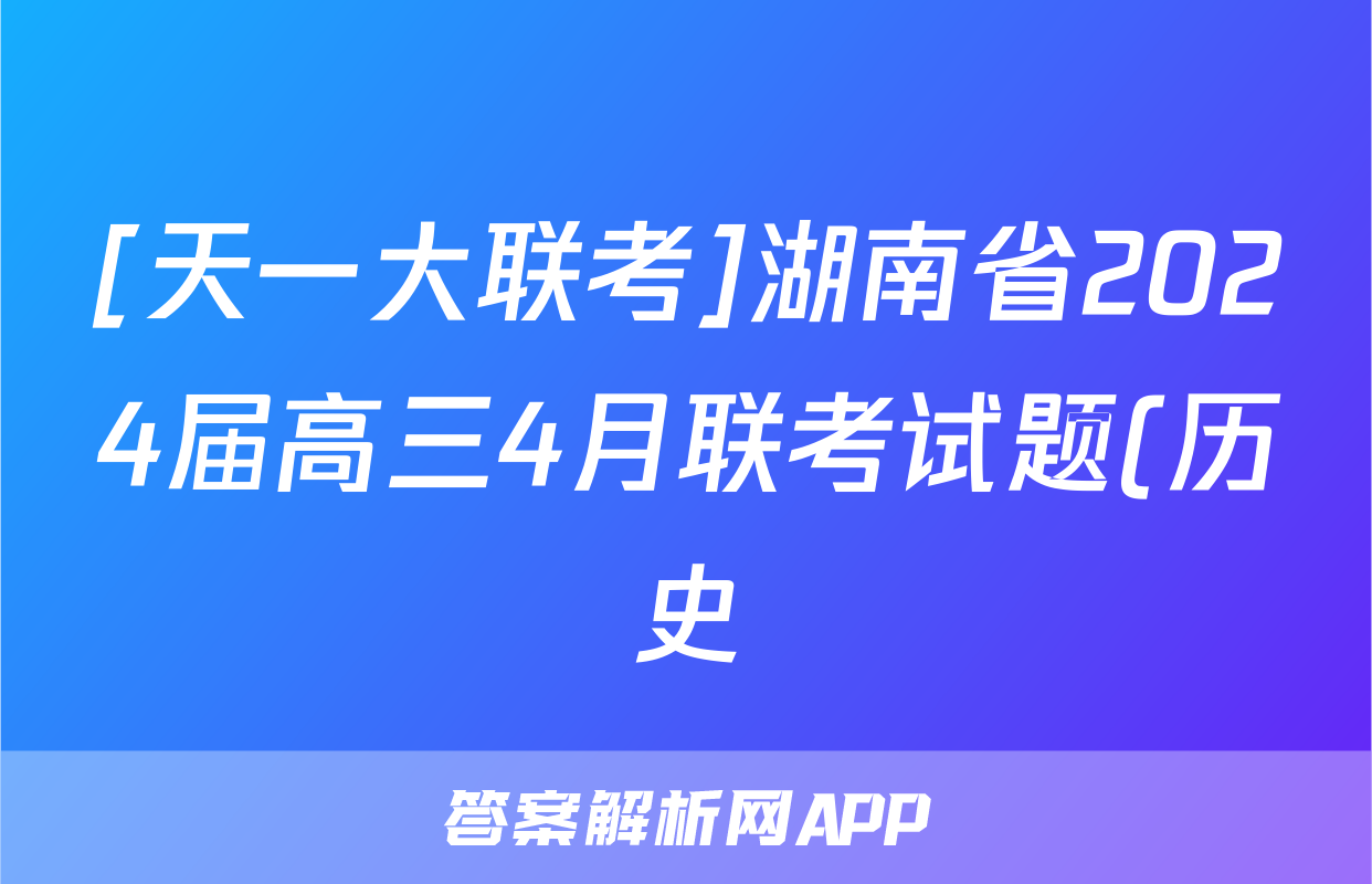 [天一大联考]湖南省2024届高三4月联考试题(历史)正在持续更新,目前2025-2026全国100所名校答案网为大家整理了相关试题及答案,供大家查缺补漏,高效提升成绩。