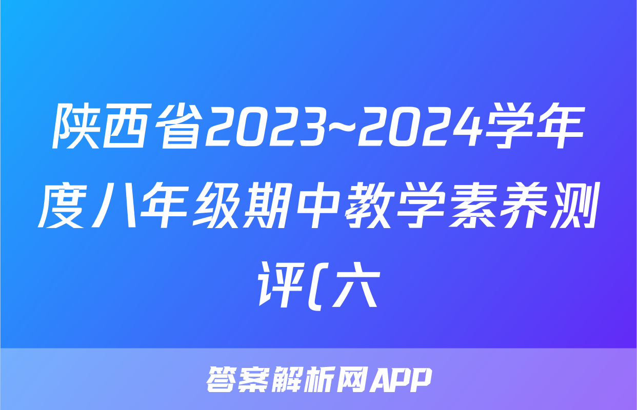陕西省2023~2024学年度八年级期中教学素养测评(六)[6L JJB-SX]英语JJB答案正在持续更新,目前2025-2026全国100所名校答案网为大家整理了相关试题及答案,供大家查缺补漏,高效提升成绩。