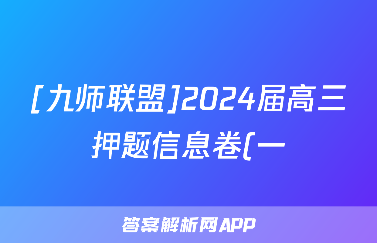 [九师联盟]2024届高三押题信息卷(一)1化学(XKB-E)试题正在持续更新,目前2025-2026全国100所名校答案网为大家整理了相关试题及答案,供大家查缺补漏,高效提升成绩。