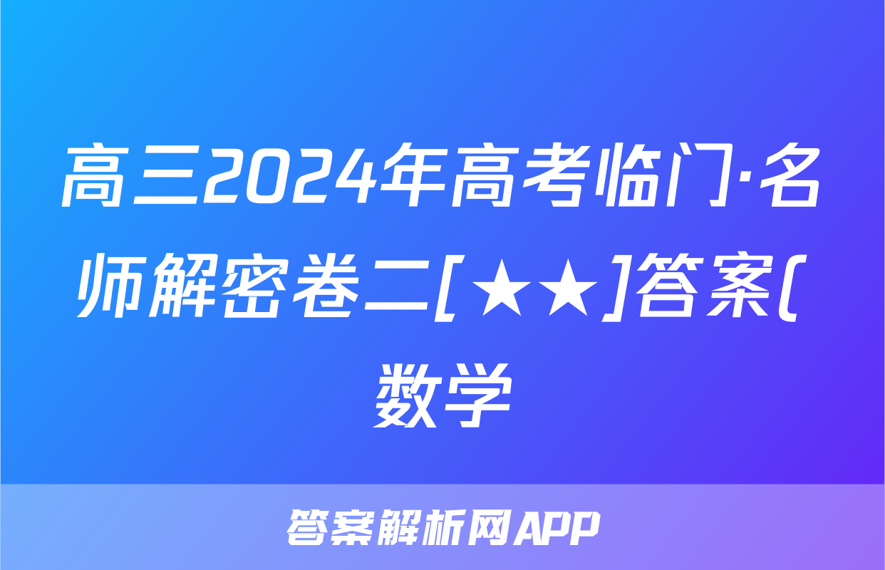 高三2024年高考临门·名师解密卷二[★★]答案(数学)正在持续更新,目前2025-2026全国100所名校答案网为大家整理了相关试题及答案,供大家查缺补漏,高效提升成绩。